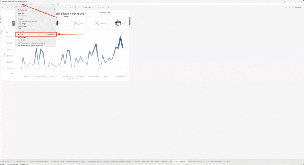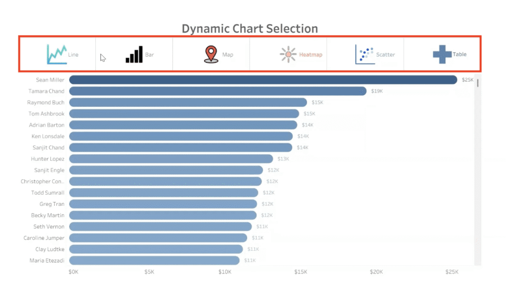 From the user’s perspective, it feels like a seamless chart switcher. Behind the scenes, Tableau is simply showing and hiding sheets based on logic you control.